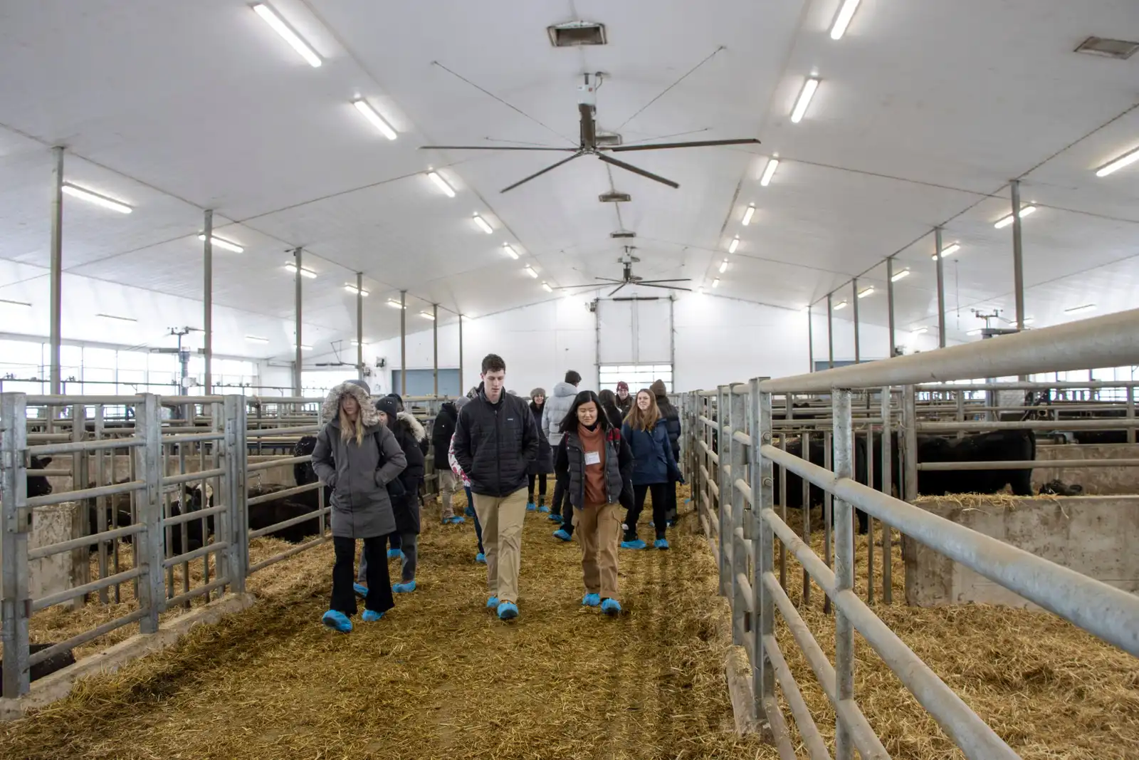 The second site visit took place at the Elora Research Stations, where cutting-edge research is advancing sustainable agriculture. Students learned about methane-reducing dairy cow breeding programs, efficient livestock feed strategies, and innovative soil monitoring systems. Experts such as Christine Baes and Katie Wood provided in-depth explanations on how scientific advancements can help lower greenhouse gas emissions in the agricultural sector without compromising productivity.